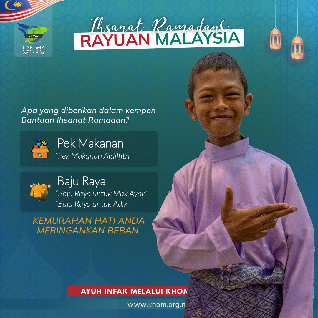 Misi Bantuan Kemanusiaan Karisma better known as KHOM, in full, the Karisma Humanitarian Outreach Mission is a fully registered, local non-profit organization bearing the registration number PPM-009-03-27112018. KHOM carries the motto ‘Light of Hope” aimed at alleviating the suffering of those caught in the world of conflict, disasters, hunger and poverty.