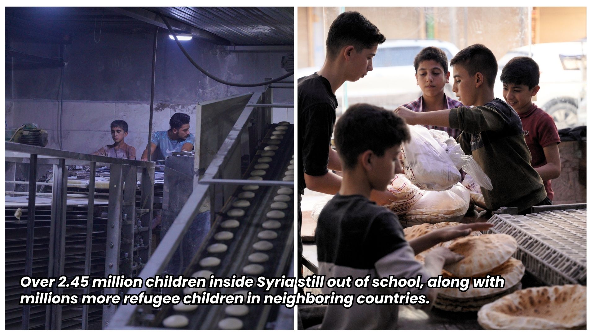 Ramai kanak-kanak menjadi buruh paksa semasa perang. Selainnya terlepas persekolahan sepenuhnya selama bertahun-tahun, tidak lagi menikmati kegembiraan berada di meja kelas. Begitupun, para pelajar Syria terus bersemangat untuk belajar. Seorang kanak-kanak berkata, “Kami gembira untuk kembali ke sekolah. Sudah bertahun kami tidak ke sekolah disebabkan perang.”