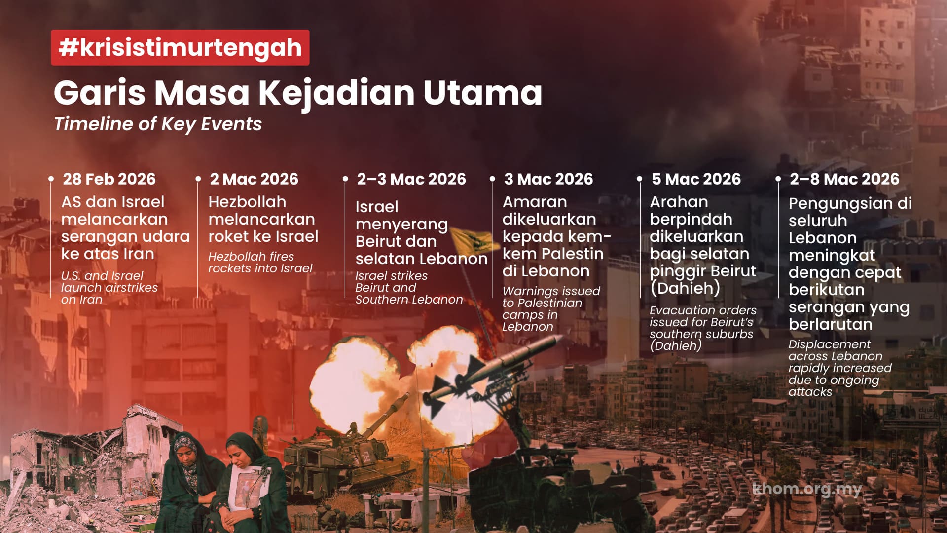 Pada 28 Februari 2026, Amerika Syarikat (AS) dan Israel telah melancarkan serangan udara ke atas Iran, kononnya berikutan kebimbangan mengenai senjata nuklear dan keselamatan wilayah. Serangan itu mencetuskan tindak balas dan tekanan yang meningkat dengan pantas di seluruh Timur Tengah, serta menjejaskan negara-negara jiran, termasuk Lebanon.