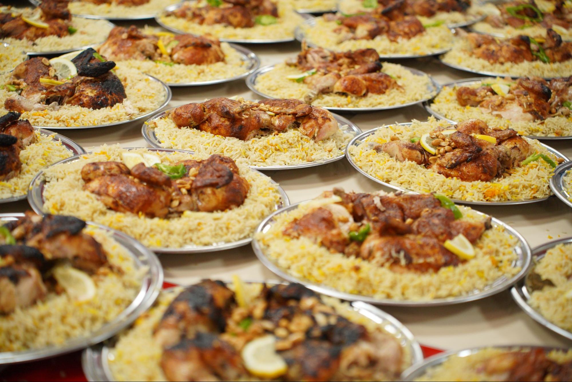 Iftar Meal: Rice with chicken or meat, dates, and water – a warm, hearty meal after a long day of fasting.