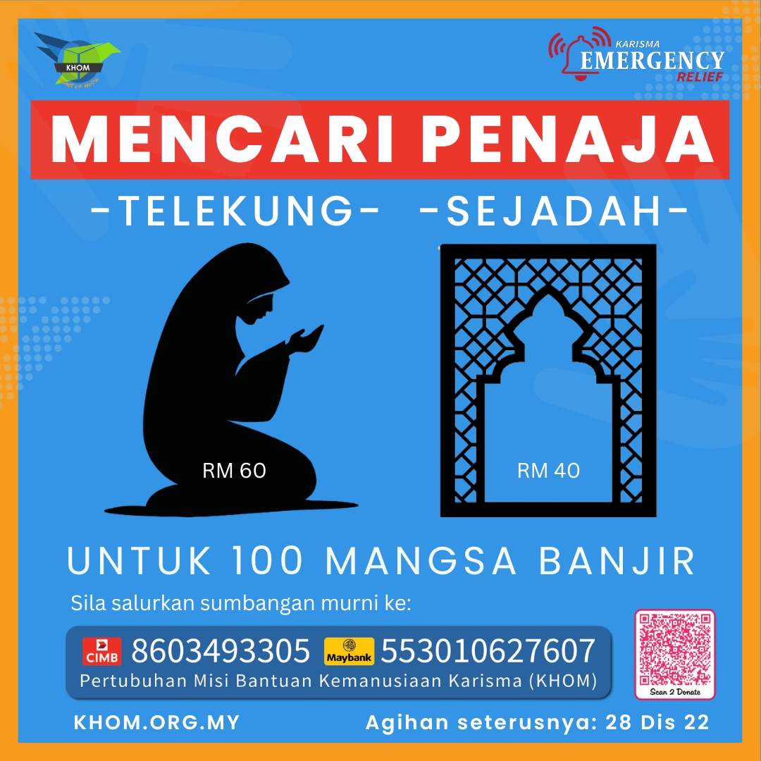 KHOM needs funding support from caring Malaysians to ensure that emergency aid can be delivered with immediate effect to the affected flood victims.
