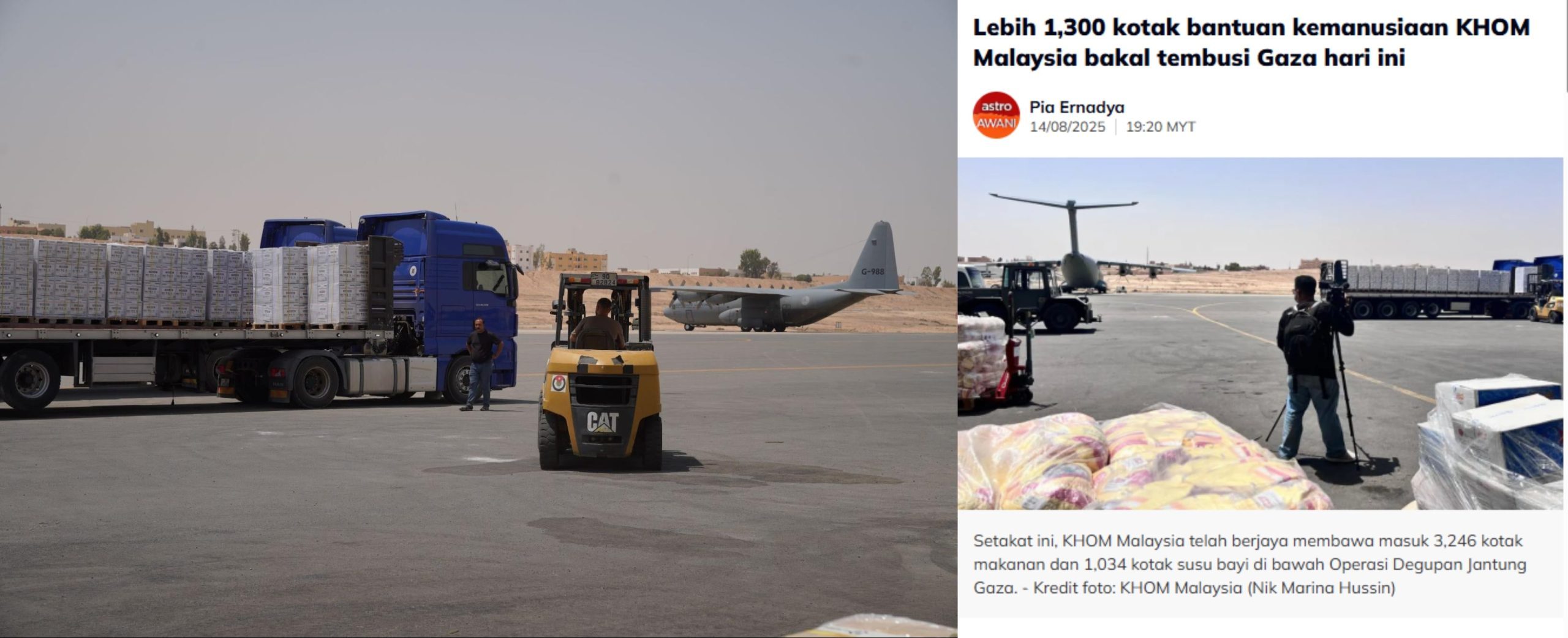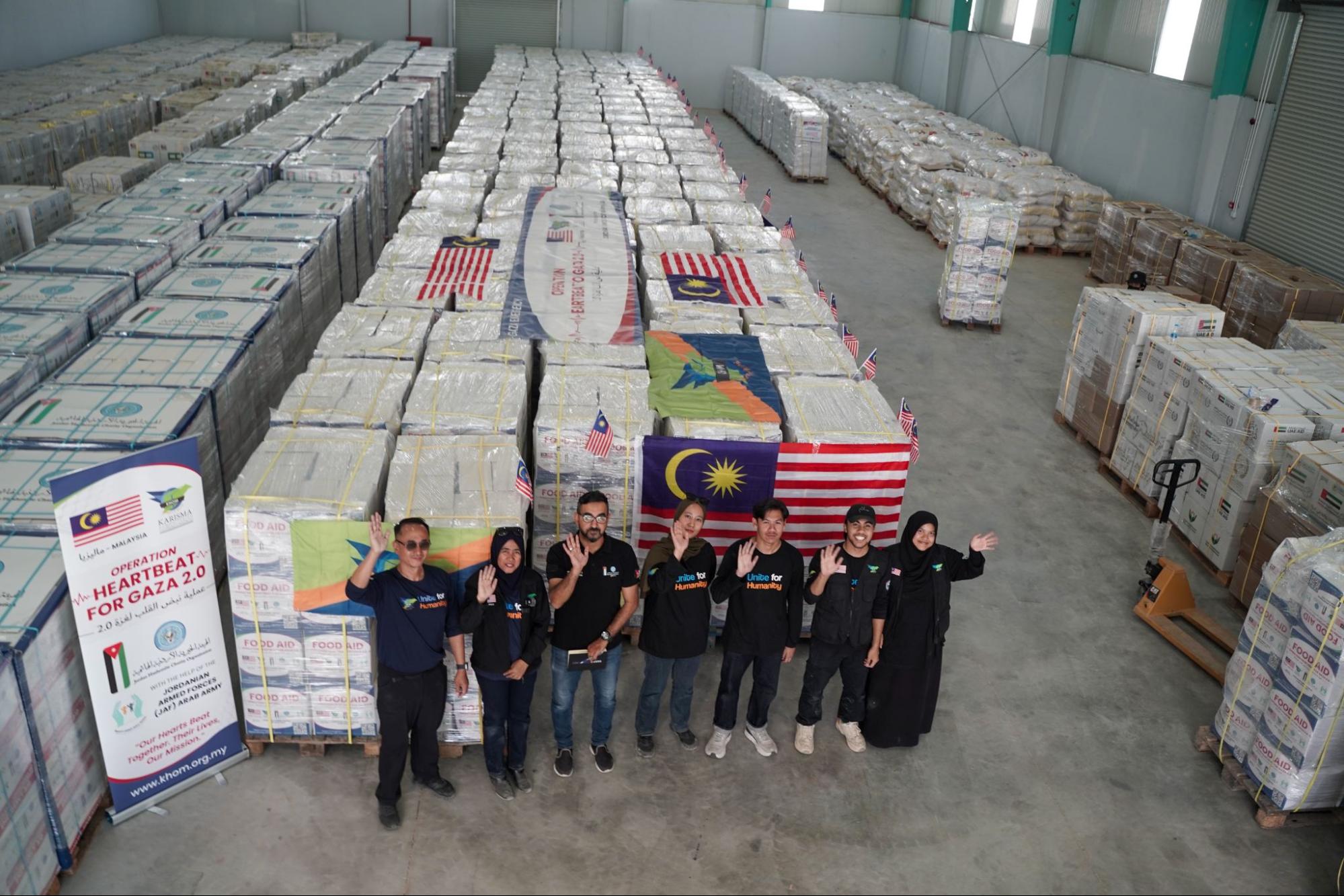 KHOM MALAYSIA has successfully handed over 2,906 food boxes, 2,880 baby milk supplies, and 350 hygiene kits to the Jordanian authorities, ready for immediate dispatch the moment Gaza’s entry routes from Jordan are opened.