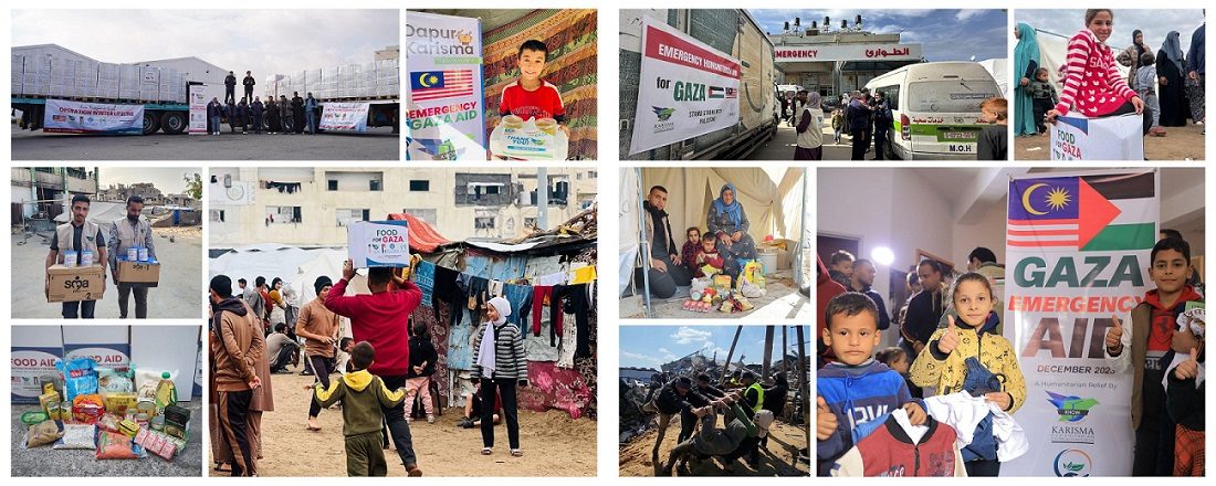 Sejak bermulanya perang Gaza pada 7 Oktober 2023 hingga pengagihan bantuan kecemasan, beberapa hari kemudian pada 12 Oktober 2023, KHOM mengambil langkah proaktif dan kekal komited untuk menghantar bantuan kecemasan segera ke Gaza. Kami telah berhasil mengumpul dana lebih daripada RM3.3 juta, membantu dalam kejayaan penghantaran barangan keperluan menerusi intervensi lebih 100 fasa.