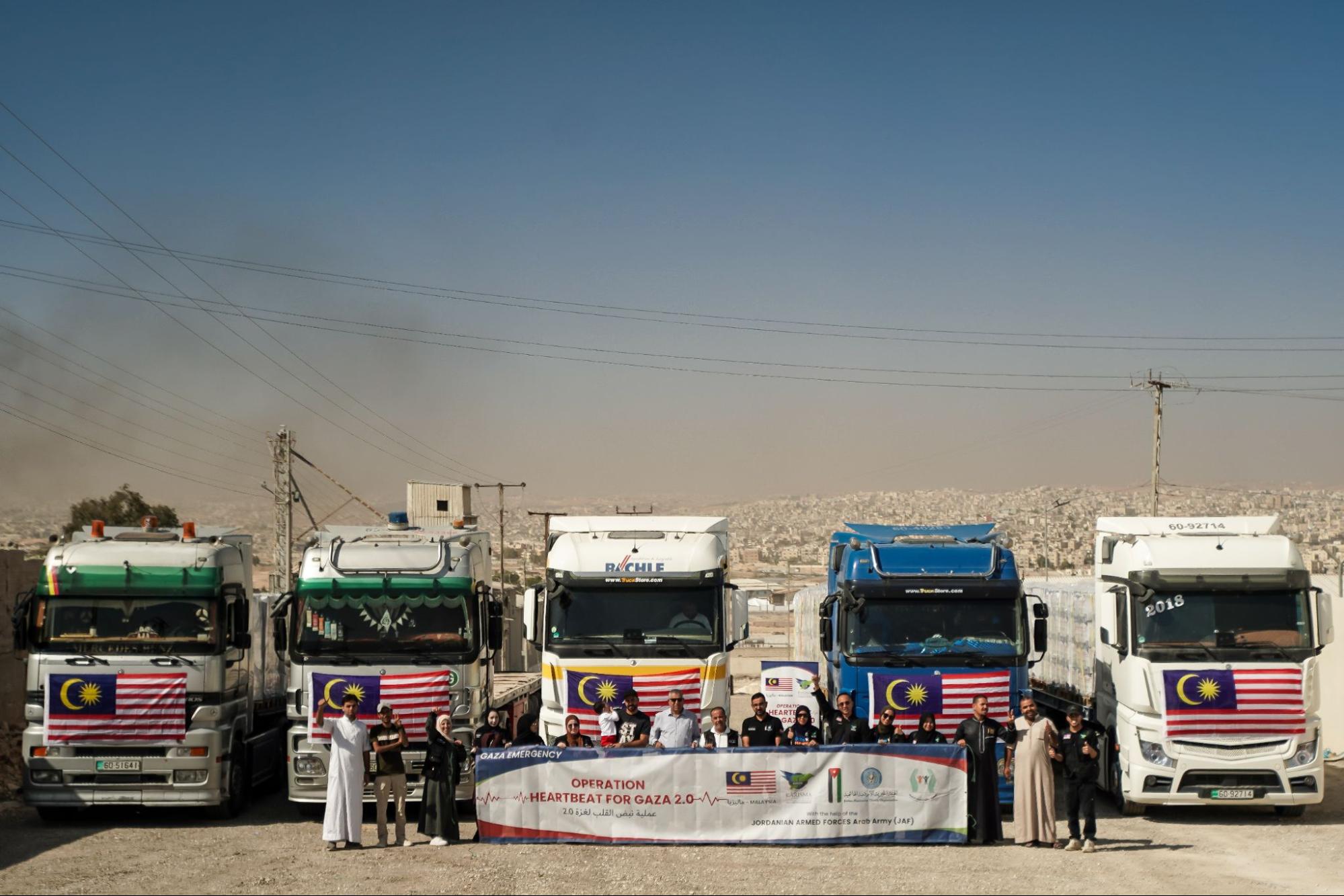 Berpangkalan di Malaysia, tim ini terbang ke Jordan untuk menguruskan logistik, koordinasi, dan operasi rentas sempadan bagi memastikan bantuan didapatkan dengan betul, disimpan, dan dihantar ke Gaza pada bila-bila masa akses diperolehi. Hasil hubungan kerjasama yang sekian lama terjalin dan kepercayaan yang diperolehi, KHOM MALAYSIA berkolaborasi secara langsung dengan pihak berkuasa tertinggi Jordan dalam melaksanakan operasi kemanusiaan secara bersama dengan sokongan Tentera Darat Jordan (JAF).